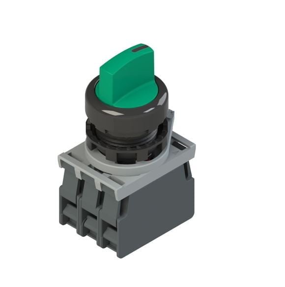 SELECTOR LUMINOSO PLASTICO, 0-1, 2 POSICIONES FIJAS, 1NA+1NC, LED VERDE 12-30VAC/DC